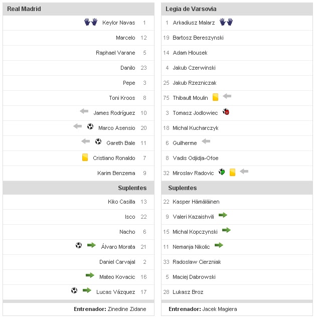 Real Madrid: 5 (Bale, Jodlowiec -p.p.-, Asensio, Lucas Vázquez y Morata)