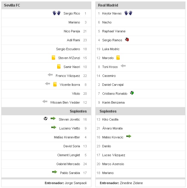 Además, hoy el Sevilla nos ha ganado haciendo lo que tantas y tantas veces hemos hecho nosotros, es decir, poniéndole corazón, calidad y ganas y luchando hasta el último minuto. A lo que hay que sumar lo que creo que han sido dos fallos garrafales de Navas en los goles, sobre todo en el segundo, en el que además ha contado con la inestimable colaboración de Benzema.