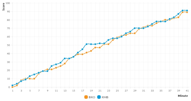 Te confieso que no esperaba que el partido fuese tan difícil, mas después de como se desarrolló el partido de la primera vuelta en el Palacio. Pero ha sido de una igualdad máxima cómo puedes comprobar en el siguiente gráfico: