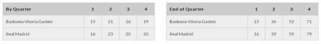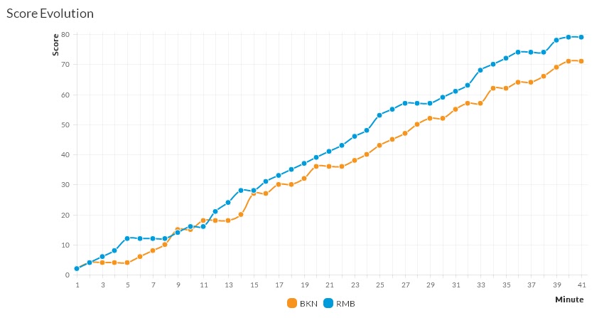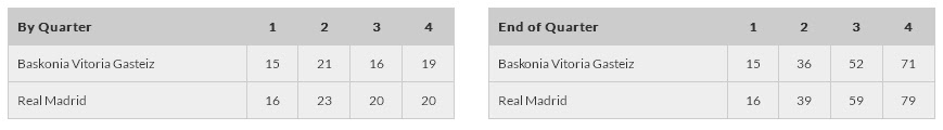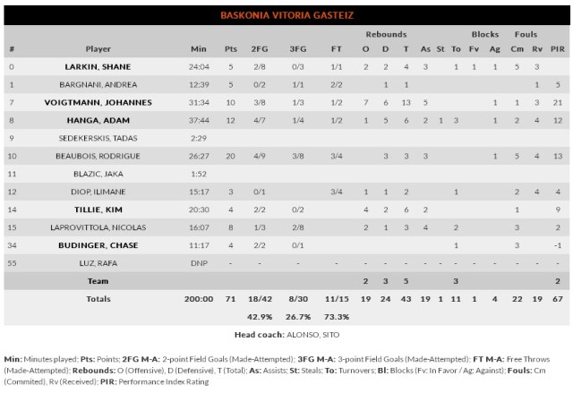 Partido que hemos dominado de principio a fin, donde el Baskonia únicamente se ha puesto por delante dos veces de forma puntual en todo el partido: