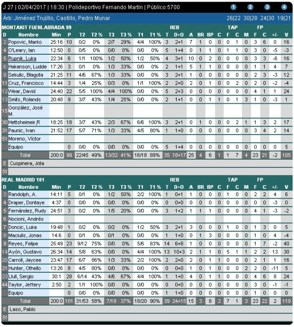 Doble ración de tapones de Ayón y culmina Llull al contraataque. #LigaEndesa pic.twitter.com/1SgLm6GWwo— #0 (@cero) 2 de abril de 2017