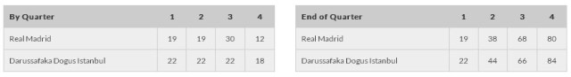 Ya te avisé el miércoles pasado del enorme peligro que tenía este Darussafaka. Y, por desgracia, los peores temores se han confirmado. Y creo que lo que mejor demuestra lo que ha sido el partido es la evolución cuarto a cuarto donde, como puedes ver, únicamente hemos sido capaces de ganar el tercer cuarto