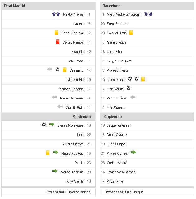 Goles de Casemiro y James. Los del Barça obra de Messi (2) y Rakitic.