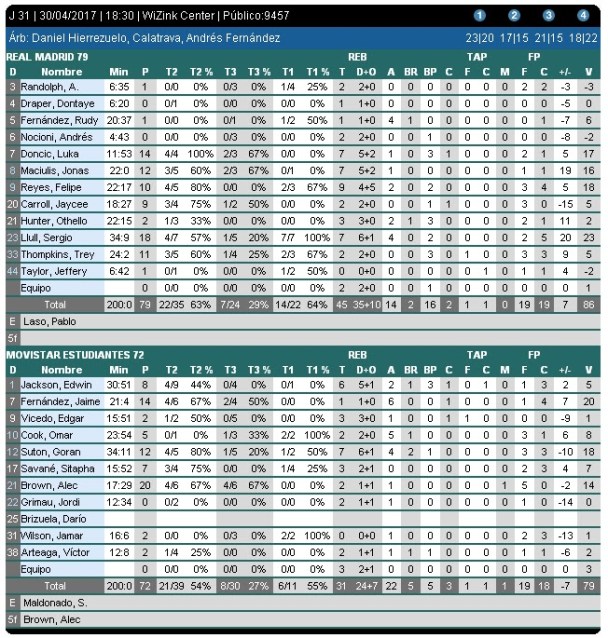 Liga Endesa 2016-17. Jornada 31 – Estudiantes