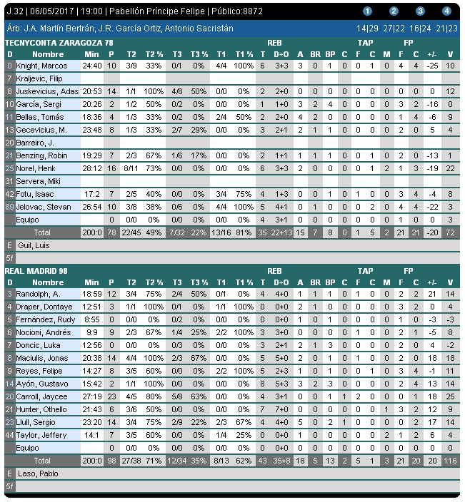 Laso: «Hemos entrado en un intercambio de canastas que no nos da nada. No podemos permitir que nos metan 27 pts en un cuarto». #LigaEndesa pic.twitter.com/Ju8C7hDO5r— Movistar Basket (@MovistarBasket) 6 de mayo de 2017