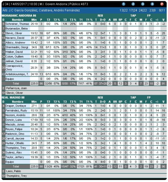 El @RMBaloncesto gana en la prórroga a un luchador @morabancandorra. La próxima batalla en el #PlayoffLigaEndesa pic.twitter.com/6y61ZF8Jg7— #0 (@cero) 14 de mayo de 2017