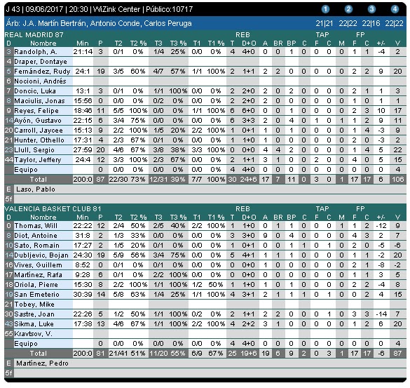 Llull culmina la victoria blanca. ¡Hasta la cocina! #PlayoffFinal pic.twitter.com/C5OyeS4nDa— Movistar Basket (@MovistarBasket) 9 de junio de 2017