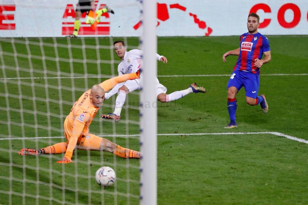 Y, qué quieres que te diga, te sientas en el sofá más feliz que una perdiz porque ves que hoy sí vas a poder disfrutar del partido. Y según van pasando los minutos te vas cargando de razones y de alegrías. Daba igual que la presión del Eibar fuera más arriba, más abajo o hacia los lados: siempre encontrábamos un hueco para dar el balón al compañero y no solo sacar la pelota limpia y aseadamente sino que, además, quedábamos en perfecta disposición para poder hacer daño en el ataque. Posesión de la que me gusta, es decir, de la que se hace con la intención de ir hacia adelante, de la que sirve para defender y para atacar. Y mientras tú sonreías y dabas las gracias por tanta transparencia, mientras te dedicabas a disfrutar, las oportunidades y, esta vez sí, los goles, iban cayendo. Total que a los veinte minutos ya llevábamos dos y no conseguimos el tercero porque Benzema, en su único fallo de la noche, no acertó.