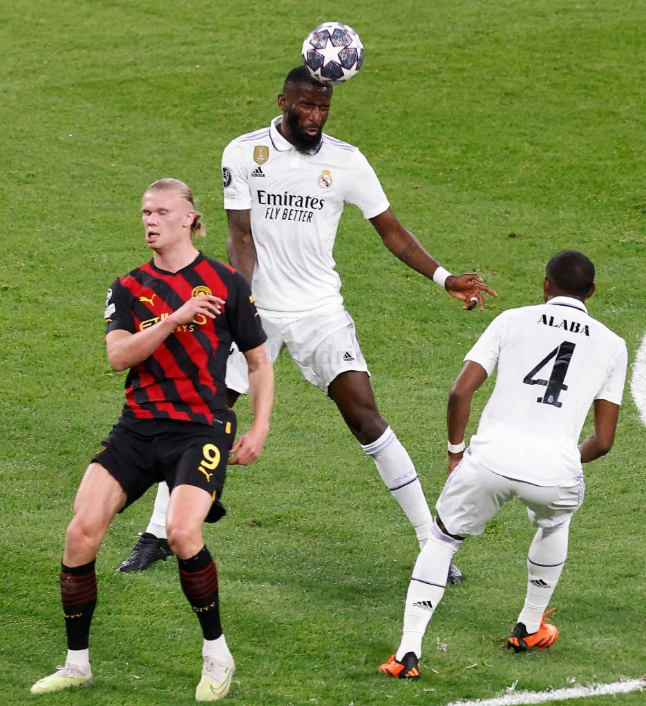 Han sido muchos y muy varios los duelos hoy sobre el campo. Uno de los más esperados y más vigilados ha sido el que han mantenido Haaland y Rüdiger. Y tengo que decir que Antonio ha estado perfecto. Ha dado un recital en todo los aspectos que un buen defensa debe dominar: anticipación, aguante cuando el rival está de espaldas, juego aéreo, juego raso, siempre bien situado, calma con el balón en los pies y buena salida de balón.