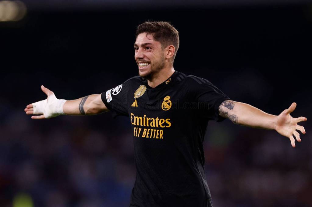El segundo ha sido el golazo de Fede Valverde, porque ha sido de Fede, no tengas ninguna duda de eso. Por si no lo has visto, se trata de un tremendísimo chutazo del Pajarito desde fuera del área que va directo a la escuadra, pero que antes toca en la espalda de un defensa, lo que hace que el balón se desvíe un poco, se estrelle violentamente contra el larguero, toque en la espalda del portero y se introduzca en la portería.