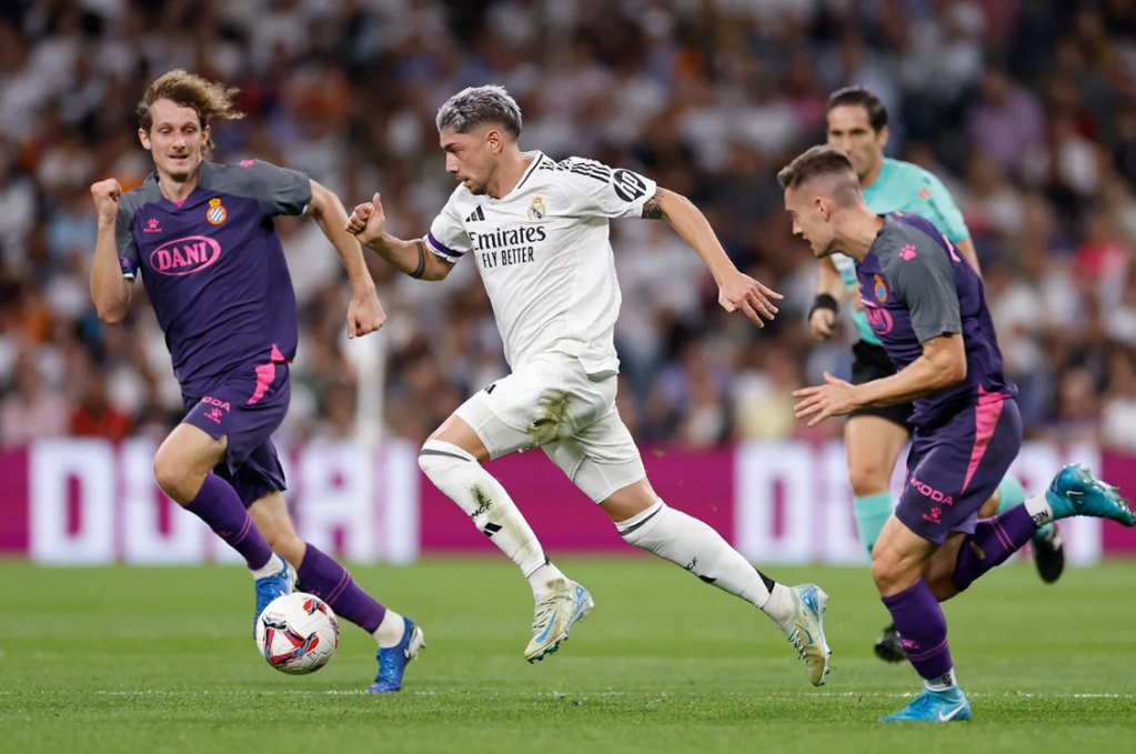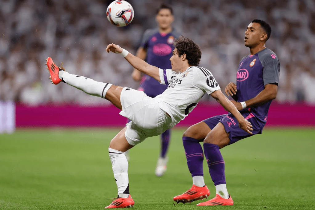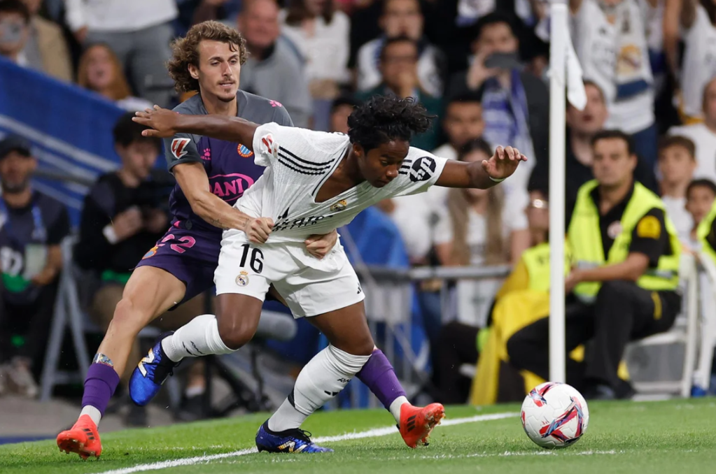 Con Tchouaméni y Fede (otro partidazo del uruguayo) guardando las espaldas y sacando el balón con limpieza y sentido; con Luka, Arda y Jude gestionando la recepción siempre con ventaja y nutriendo de buenos balones a Mbappé y Rodrygo; con estos dos machacando constantemente a Joan García (excelente portero, por cierto); y sumándole que Fran García y Carvajal se han cansado de recorrer su banda una y otra vez … lo extraño es que hayan tardado tanto en llegar los goles.