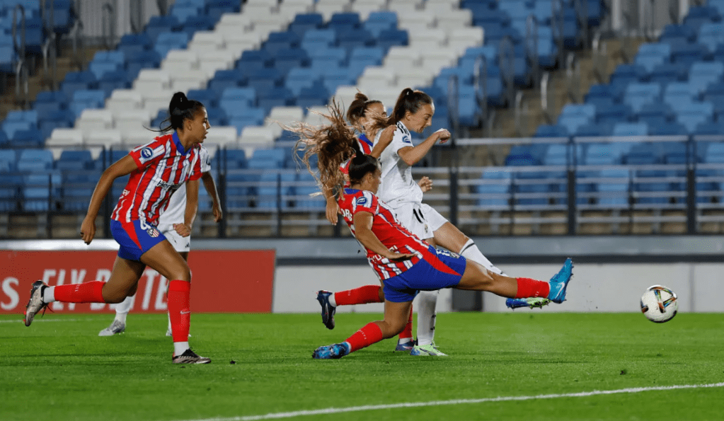 Con estos mimbres el partido ha comenzado con bastante posesión atlética, pero sin hacer mucha pupa arriba. Hasta que llegó el gol de Weir (otra vez ELLA), tras una excelente jugada colectiva que hizo que el balón pasara a velocidad de vértigo entre Weir, Linda Caicedo, Weir again, Brunn y otra vez la escocesa, que clavó el primero en las redes rojiblancas.
