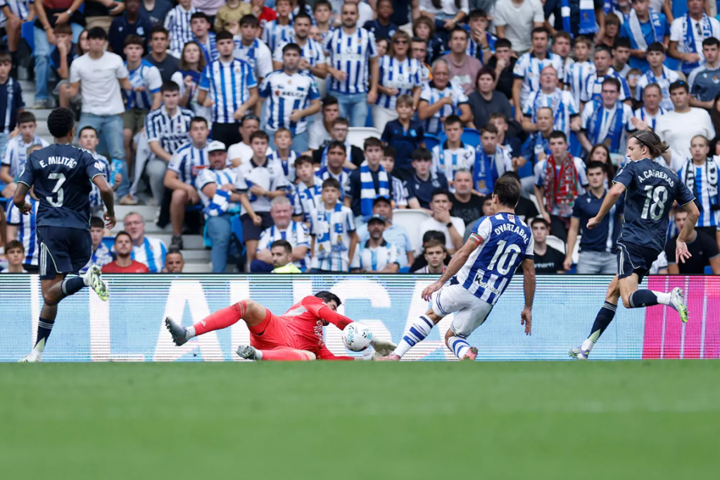 Entre postes, fallos de los nuestros y paradones inverosímiles de Remiro conté hasta 5 oportunidades claras que, sumados a los dos goles conseguidos, habrían dejado temblando a la parroquia del Reale Arena al descanso. Y todo ello sin que Vini Jr. haya encontrado aún sitio, lo que hace aún más meritorio lo realizado por los nuestros. Yo le seguiré esperando el tiempo que haga falta, no tengo problema con ello, pero más le vale espabilar pronto o quizá el que termine cansado de esperar sea el mismísimo Xabi Alonso.
